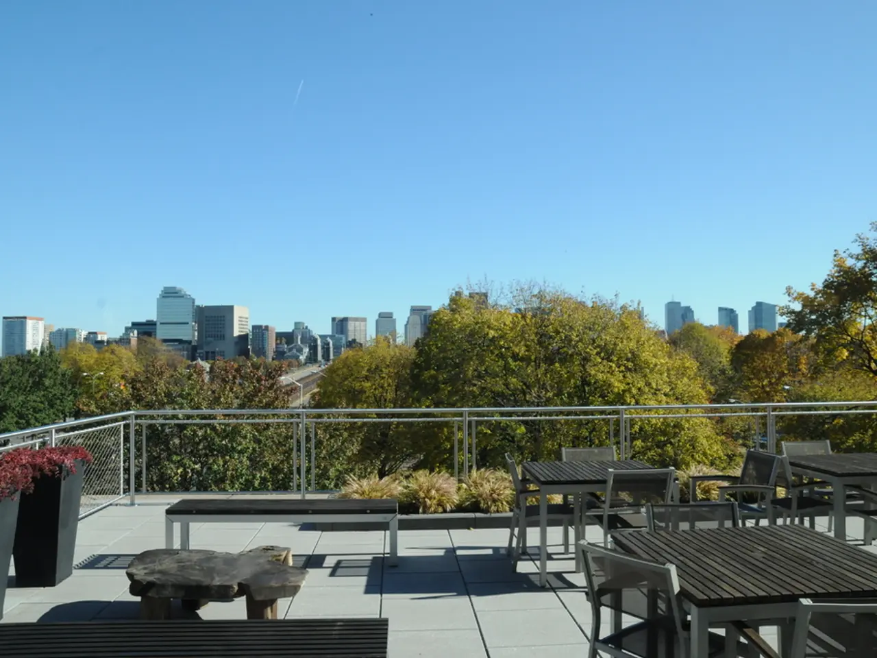 Il giardino spazioso è ancorato da un bar esterno curvo, fiancheggiato da due fontane alte nove piedi. Il bar esterno presenta divani imbottiti a motivi audaci e ombrelloni pieghettati, tutti personalizzati da SCOLARO, un produttore di qualità commerciale.